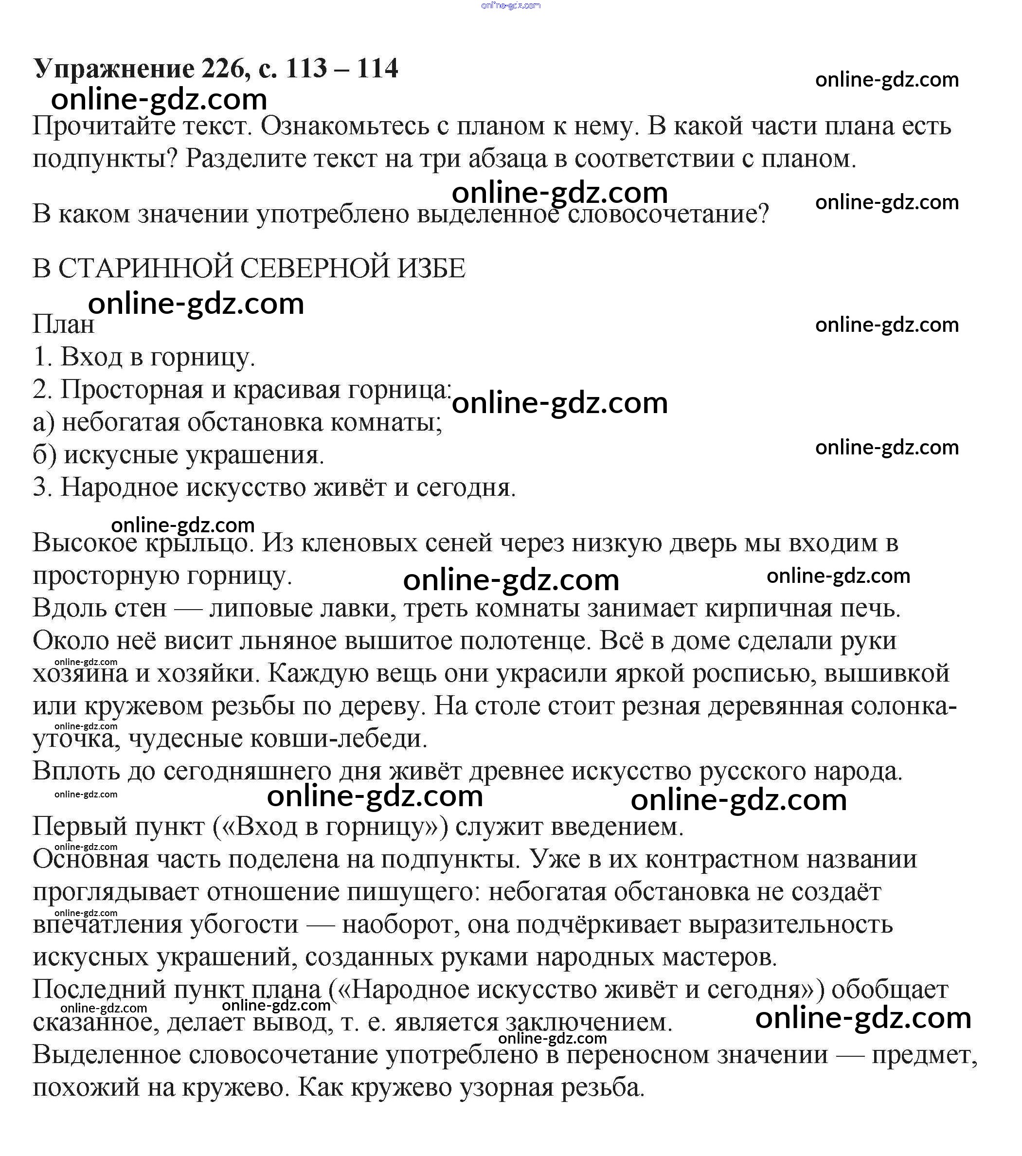 Готовые домашние задания по Русскому языку за 6 класс Учебник Баранов, Ладыженская 2015 - Упражнения Часть 1 226