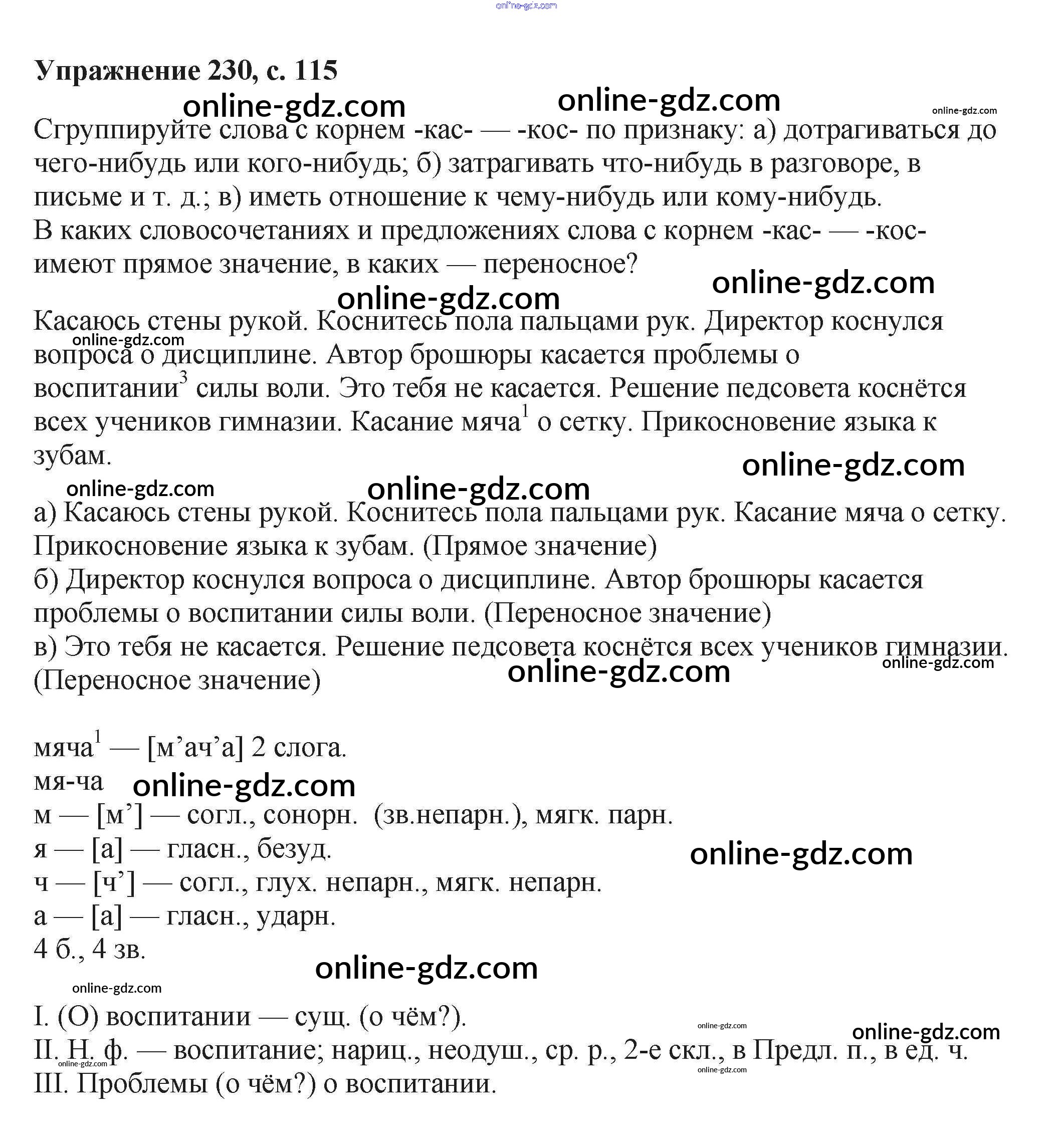 Готовые домашние задания по Русскому языку за 6 класс Учебник Баранов, Ладыженская 2015 - Упражнения Часть 1 230