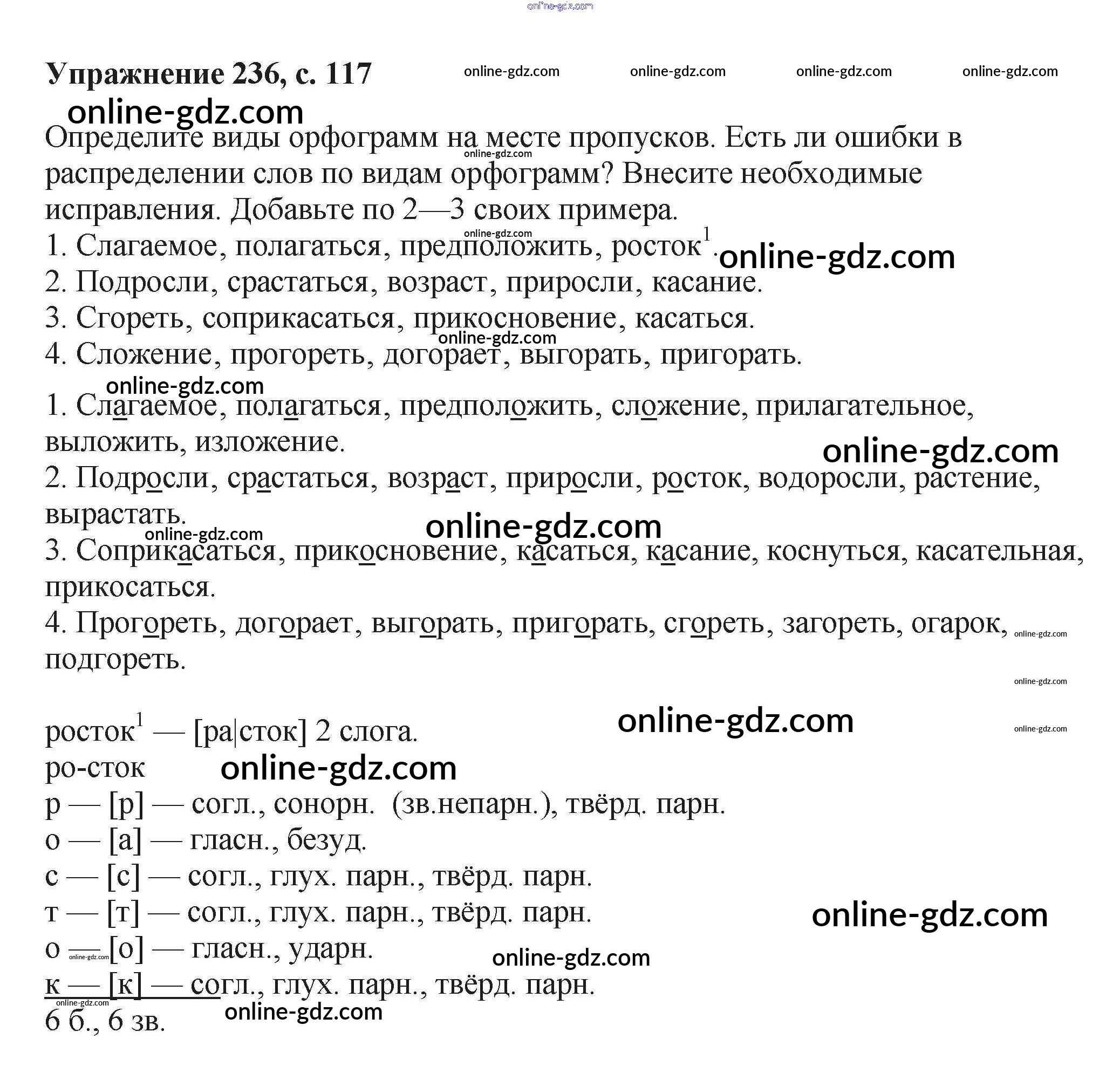Готовые домашние задания по Русскому языку за 6 класс Учебник Баранов, Ладыженская 2015 - Упражнения Часть 1 236