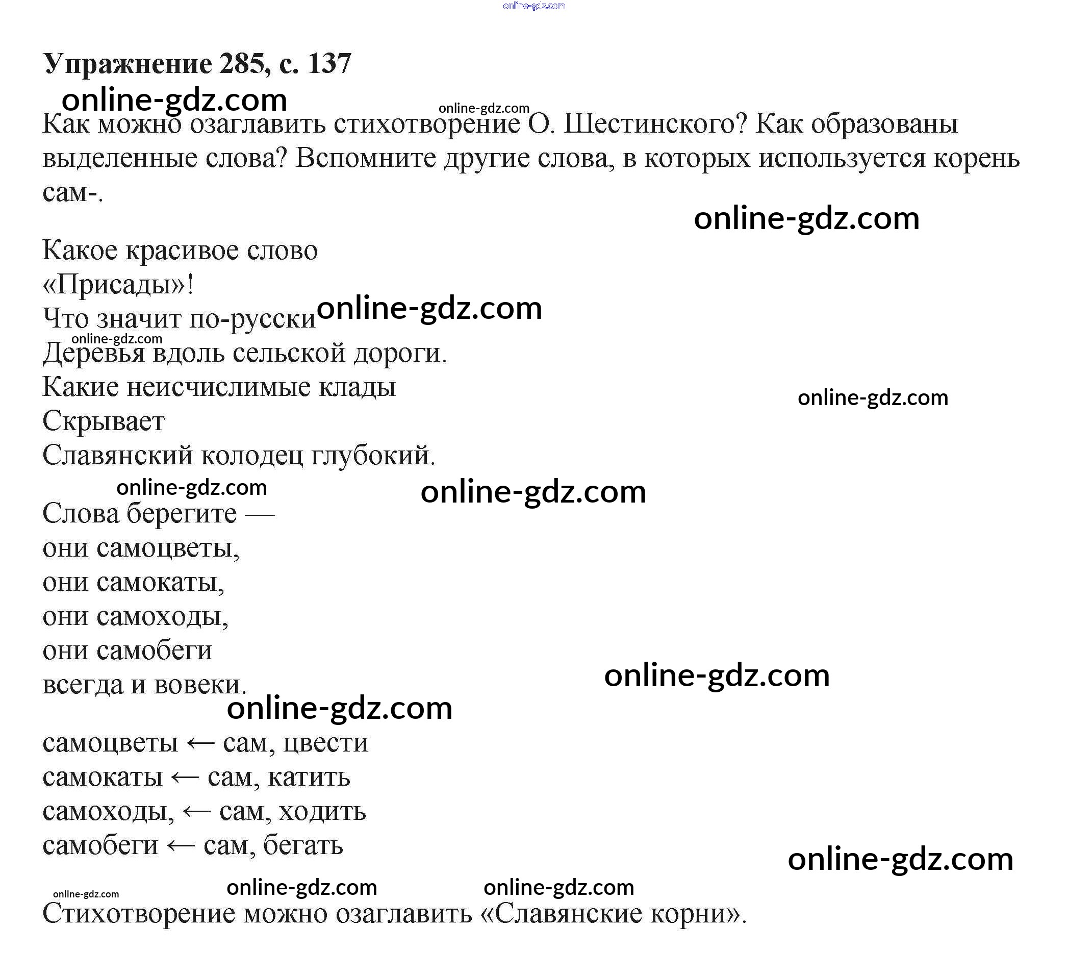 Готовые домашние задания по Русскому языку за 6 класс Учебник Баранов, Ладыженская 2015 - Упражнения Часть 1 285