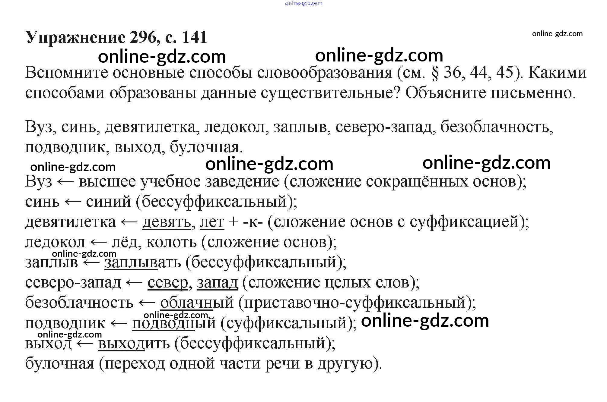 Готовые домашние задания по Русскому языку за 6 класс Учебник Баранов, Ладыженская 2015 - Упражнения Часть 1 296
