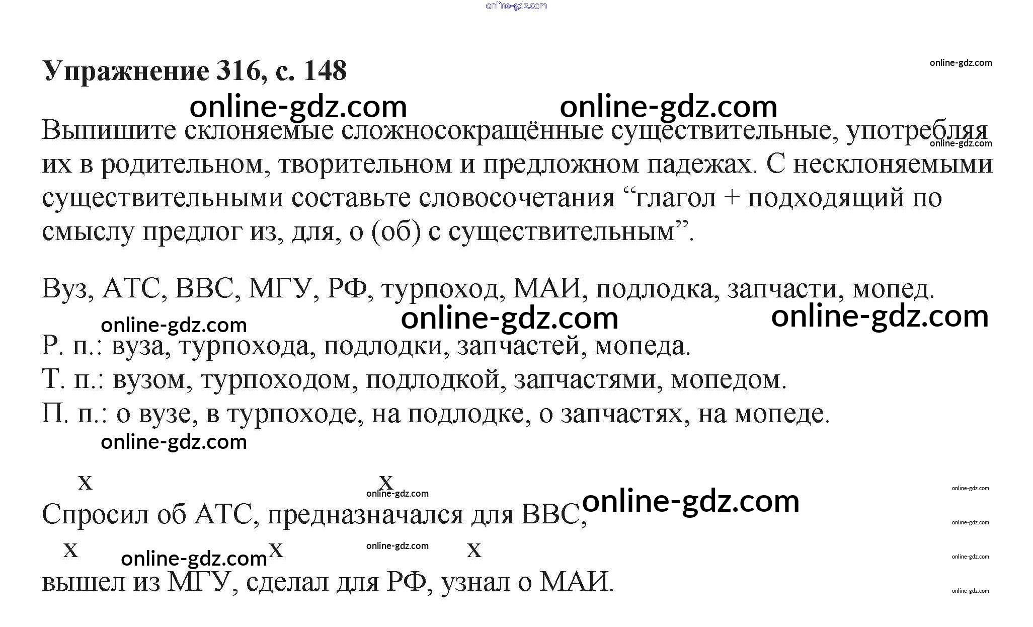 Готовые домашние задания по Русскому языку за 6 класс Учебник Баранов, Ладыженская 2015 - Упражнения Часть 1 316