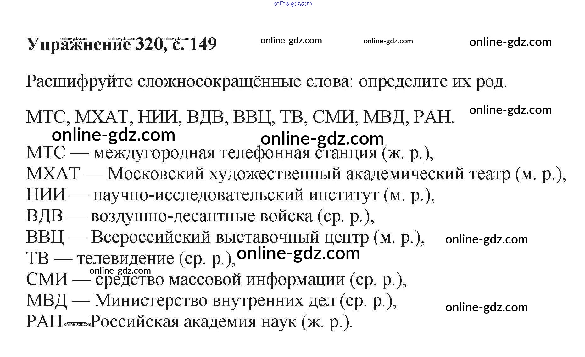 Готовые домашние задания по Русскому языку за 6 класс Учебник Баранов, Ладыженская 2015 - Упражнения Часть 1 320