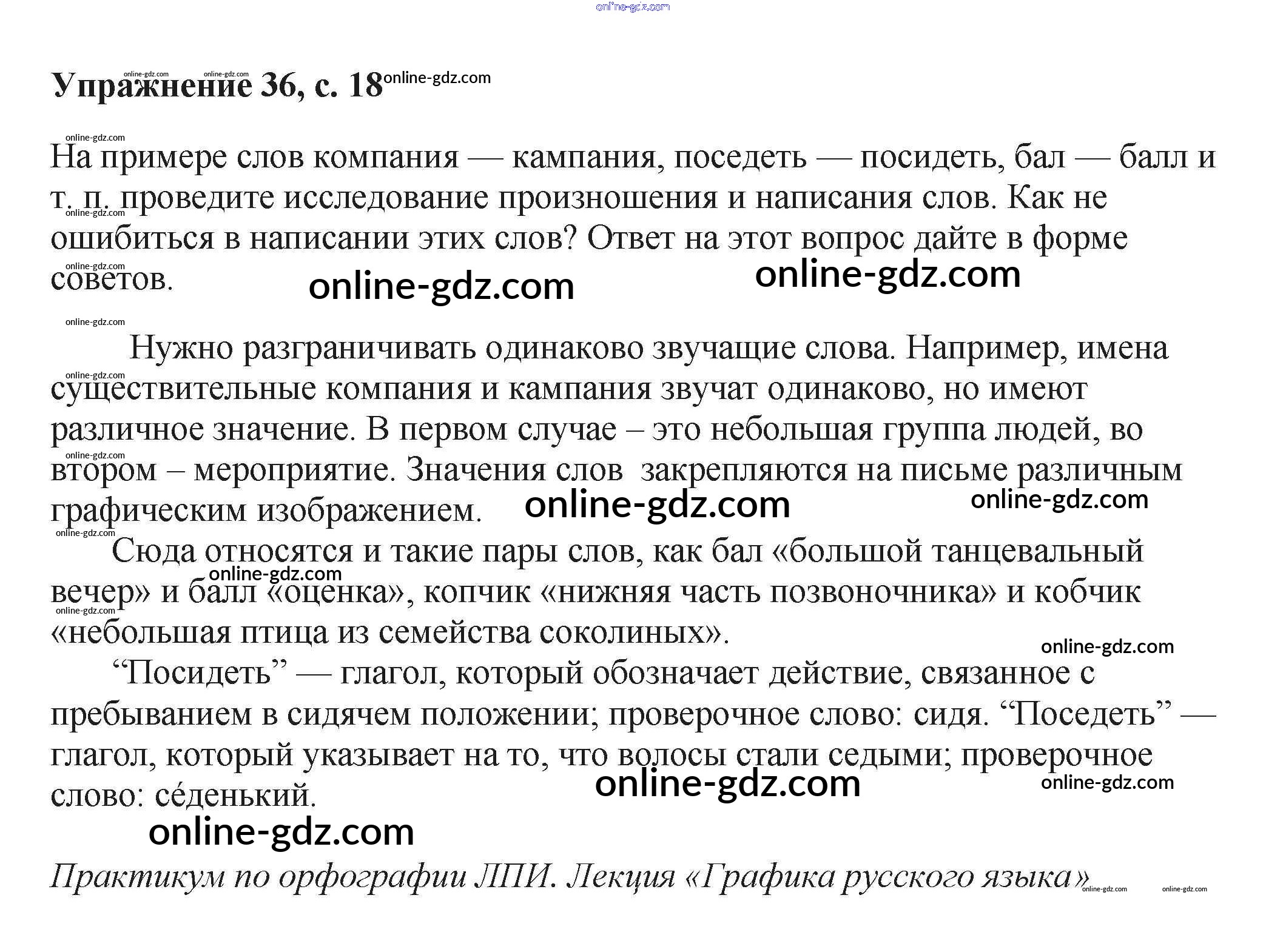 Готовые домашние задания по Русскому языку за 6 класс Учебник Баранов, Ладыженская 2015 - Упражнения Часть 1 36