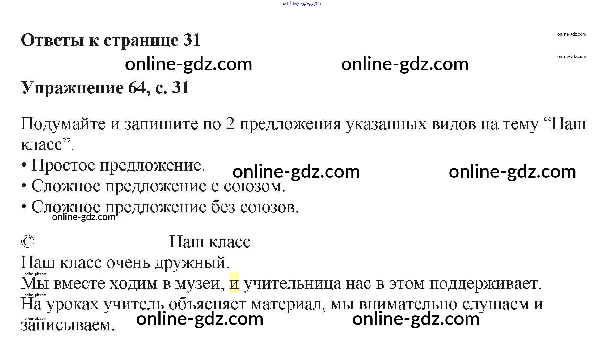 Готовые домашние задания по Русскому языку за 6 класс Учебник Баранов, Ладыженская 2015 - Упражнения Часть 1 64