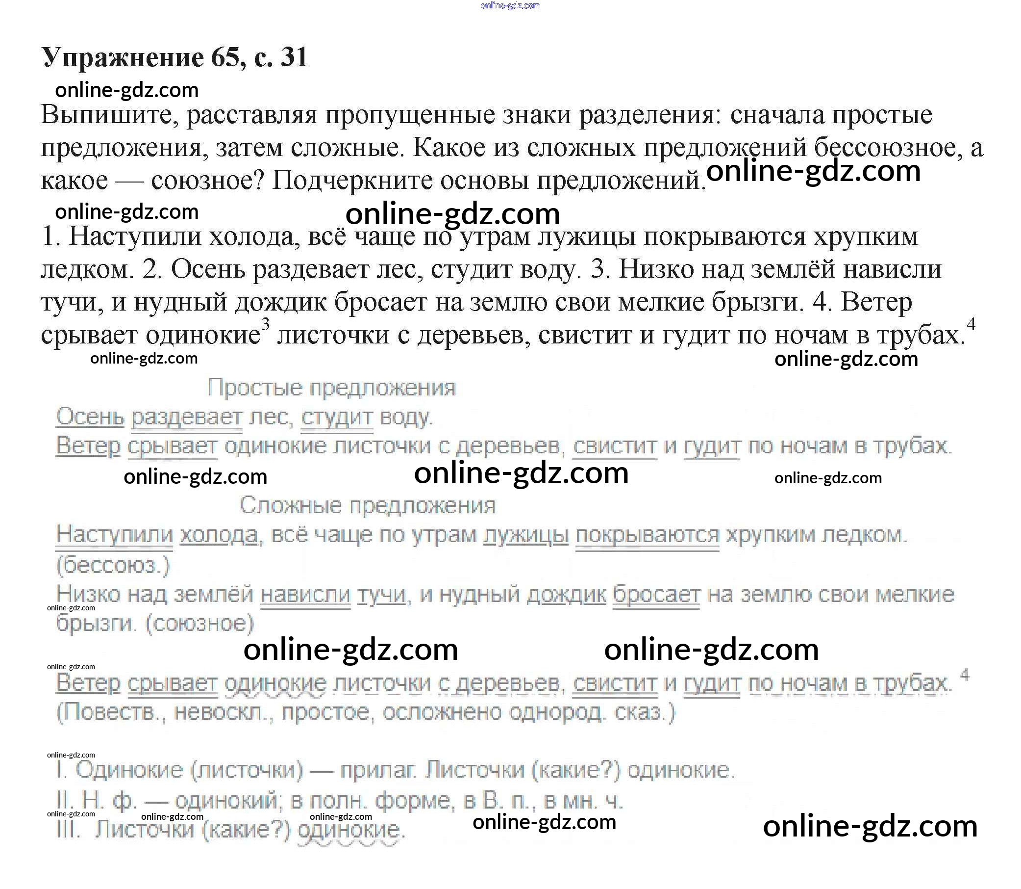 Готовые домашние задания по Русскому языку за 6 класс Учебник Баранов, Ладыженская 2015 - Упражнения Часть 1 65