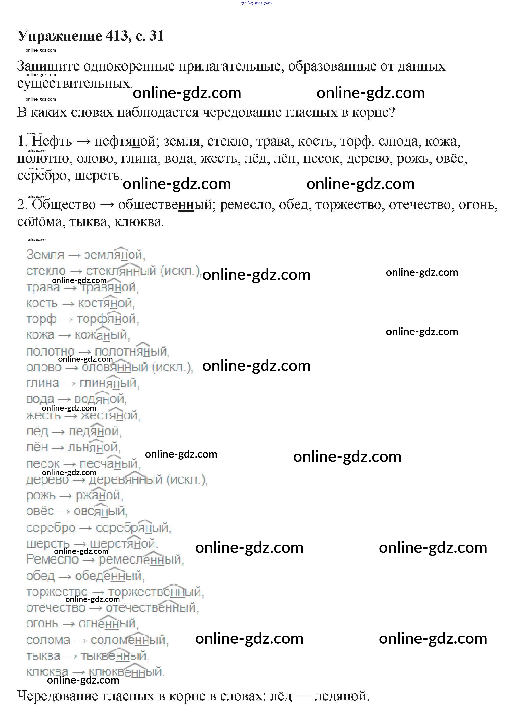Готовые домашние задания по Русскому языку за 6 класс Учебник Баранов, Ладыженская 2015 - Упражнения Часть 2 413