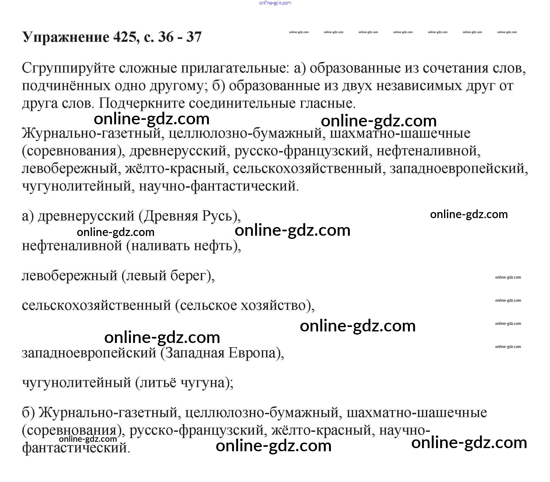 Готовые домашние задания по Русскому языку за 6 класс Учебник Баранов, Ладыженская 2015 - Упражнения Часть 2 425