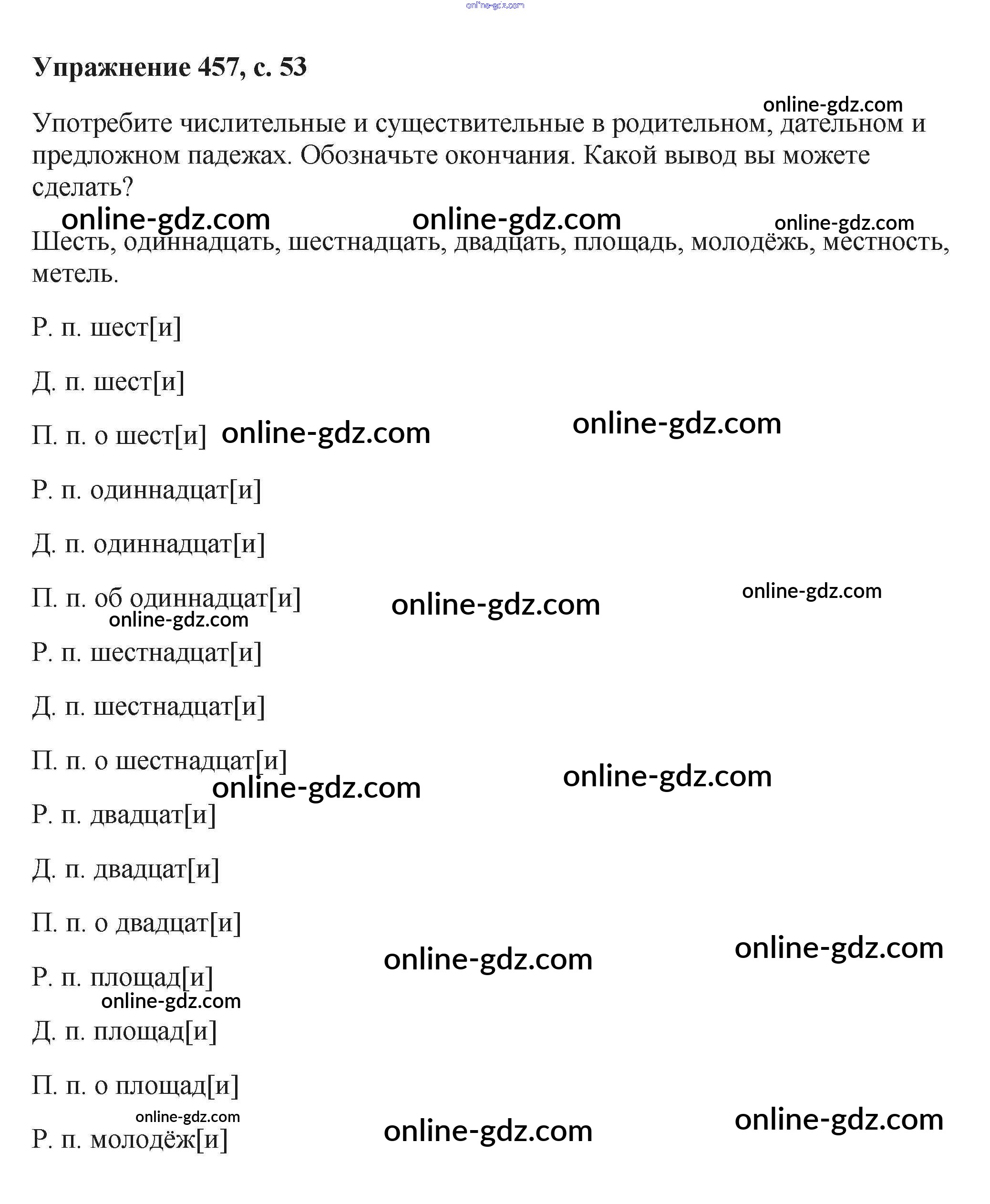 Готовые домашние задания по Русскому языку за 6 класс Учебник Баранов, Ладыженская 2015 - Упражнения Часть 2 457