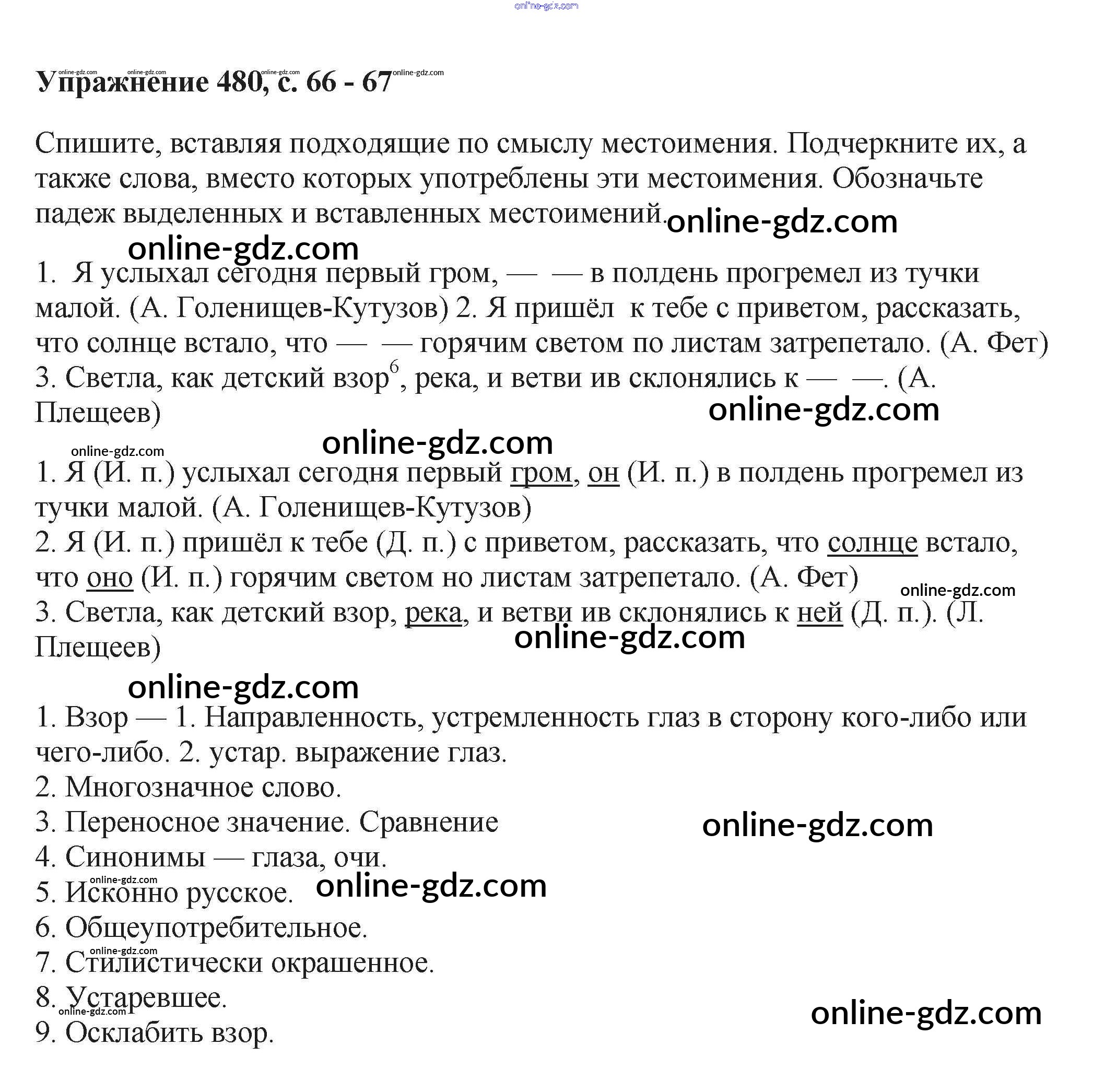 Готовые домашние задания по Русскому языку за 6 класс Учебник Баранов, Ладыженская 2015 - Упражнения Часть 2 480