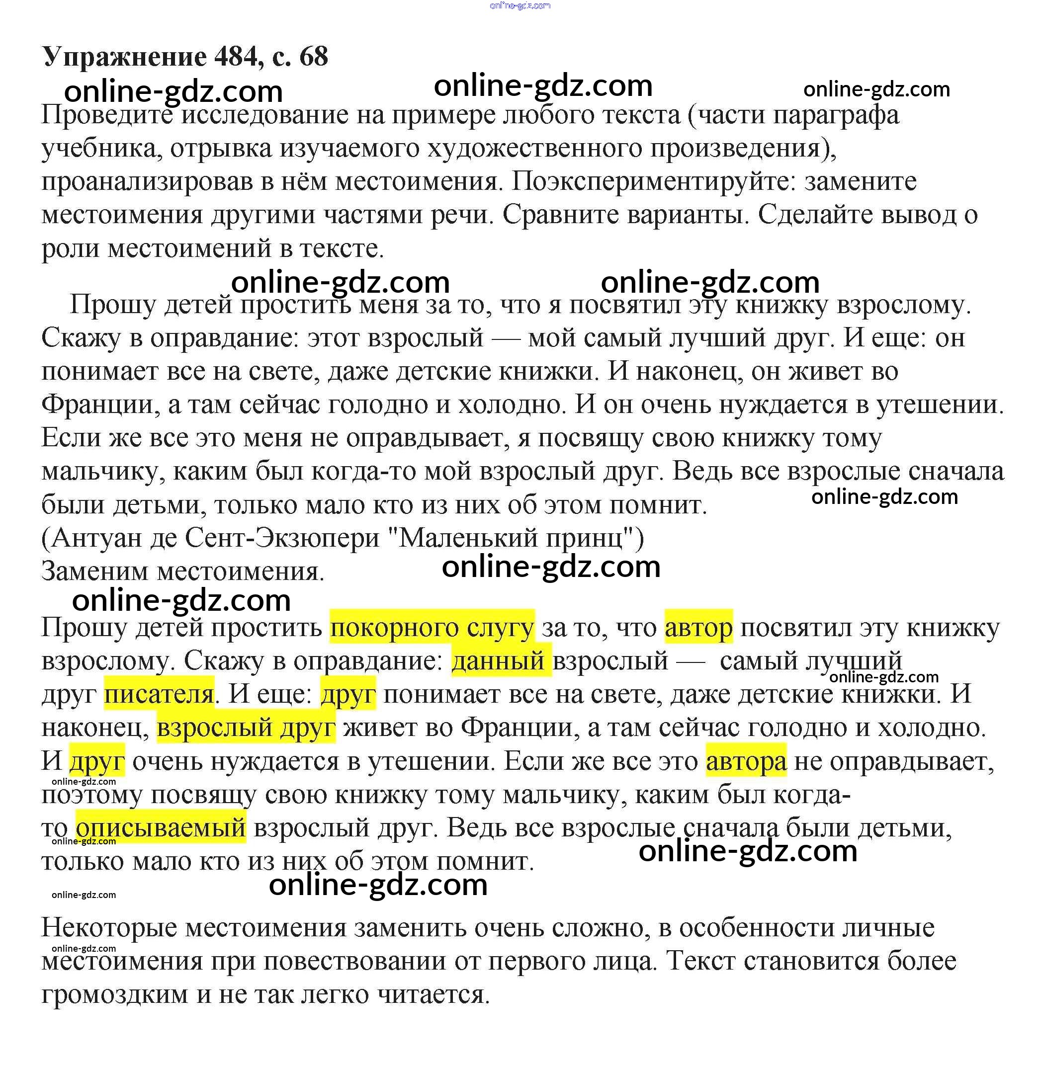 Готовые домашние задания по Русскому языку за 6 класс Учебник Баранов, Ладыженская 2015 - Упражнения Часть 2 484