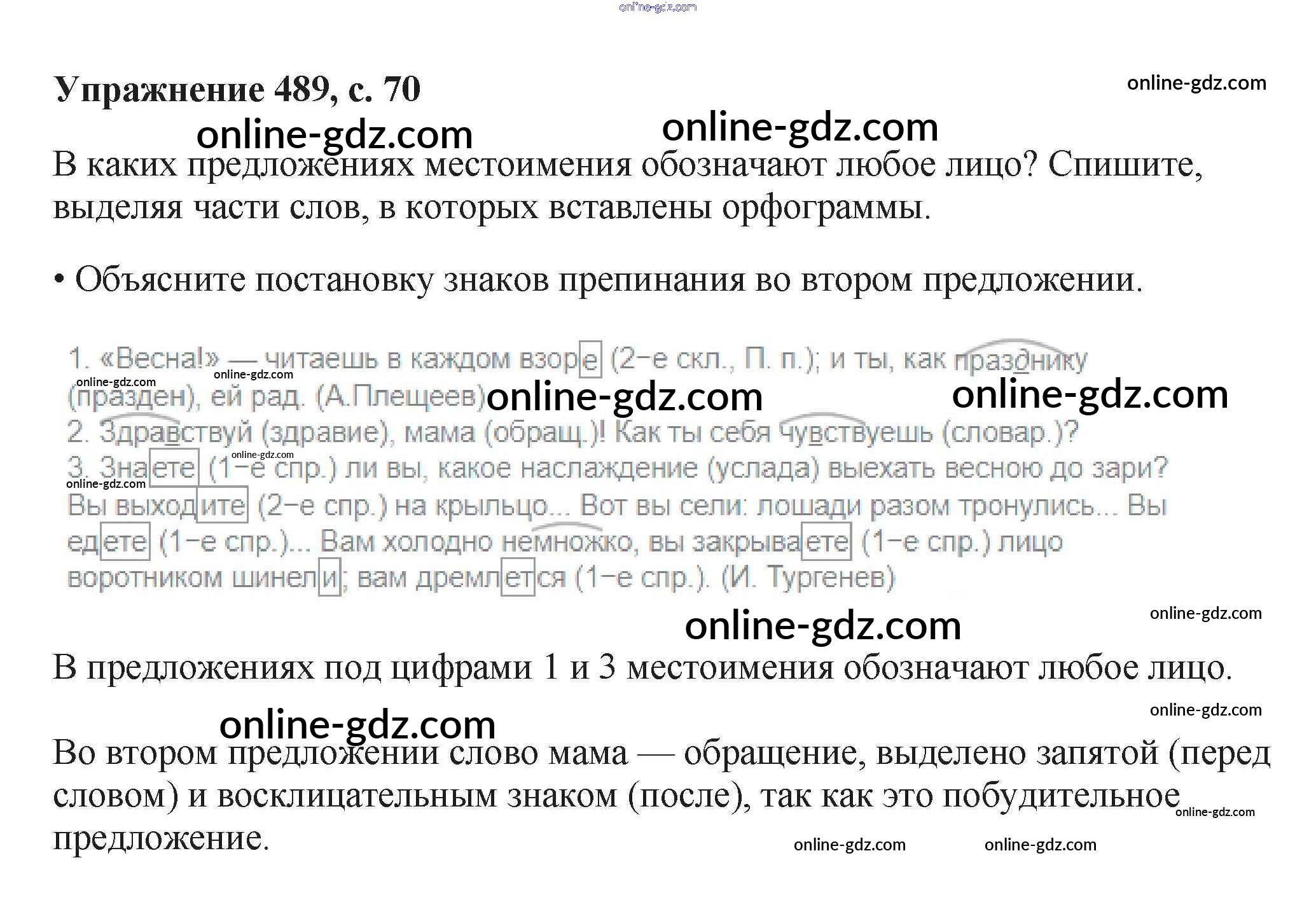 Готовые домашние задания по Русскому языку за 6 класс Учебник Баранов, Ладыженская 2015 - Упражнения Часть 2 489
