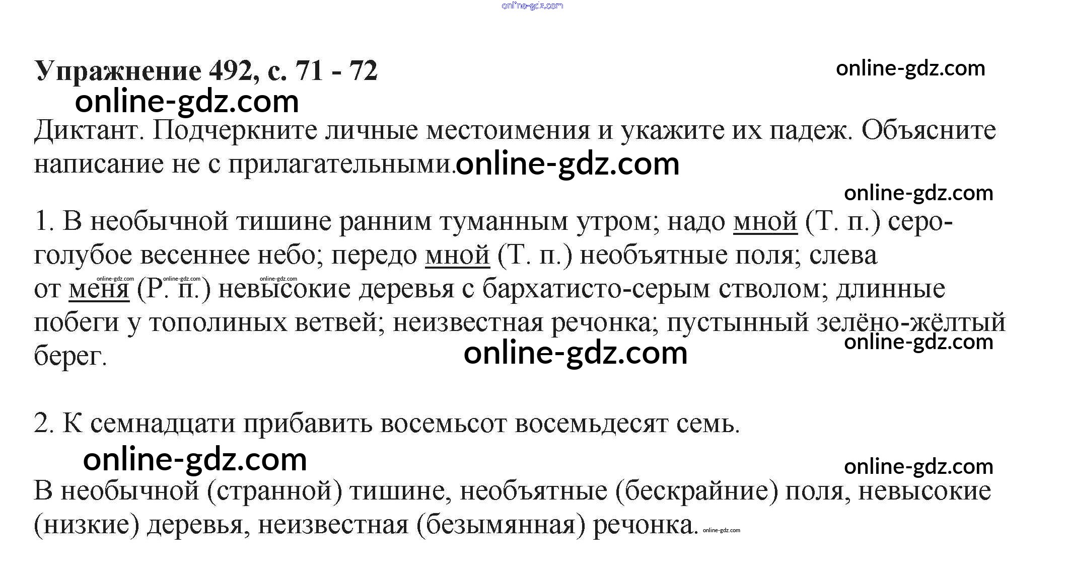 Готовые домашние задания по Русскому языку за 6 класс Учебник Баранов, Ладыженская 2015 - Упражнения Часть 2 492