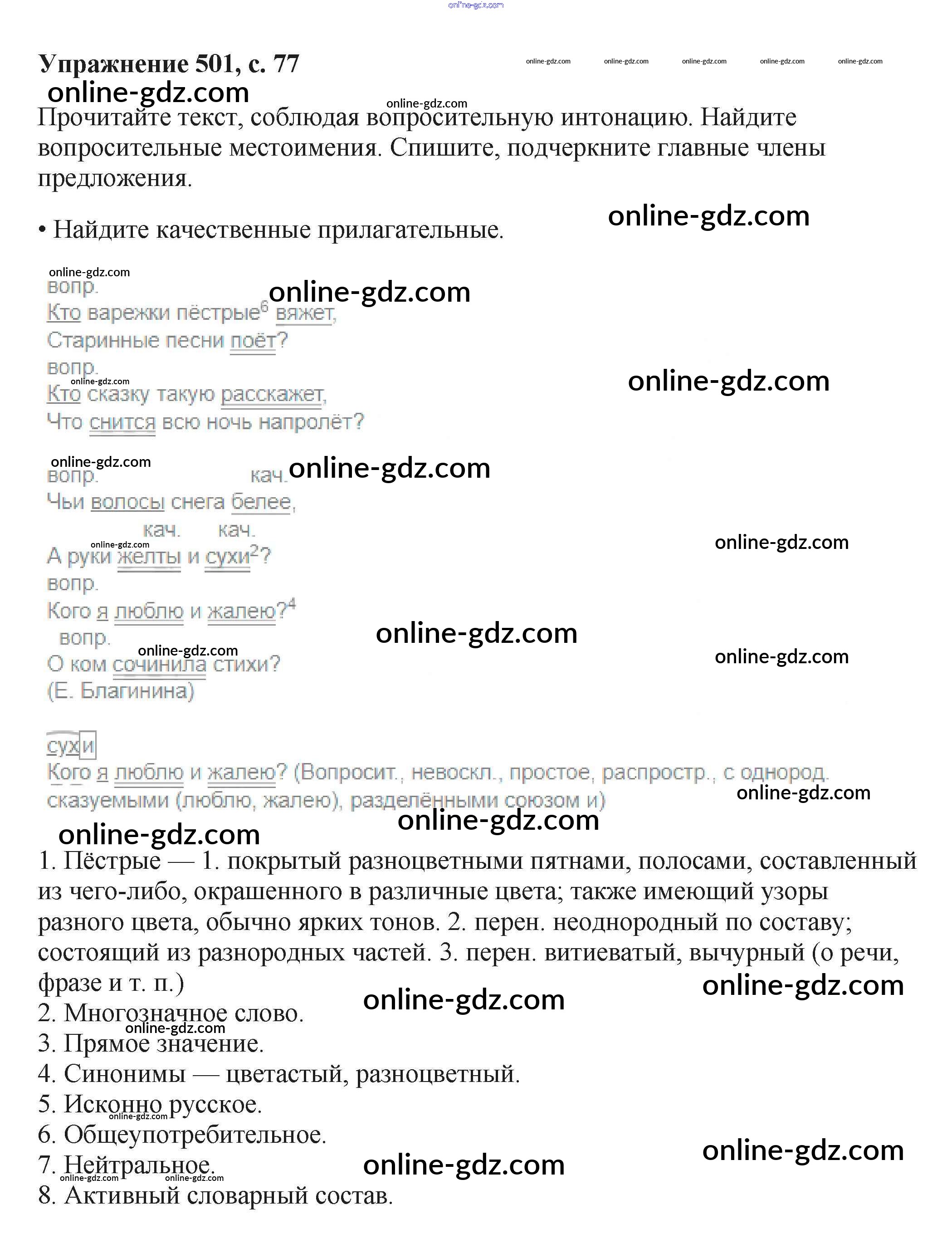 Готовые домашние задания по Русскому языку за 6 класс Учебник Баранов, Ладыженская 2015 - Упражнения Часть 2 501