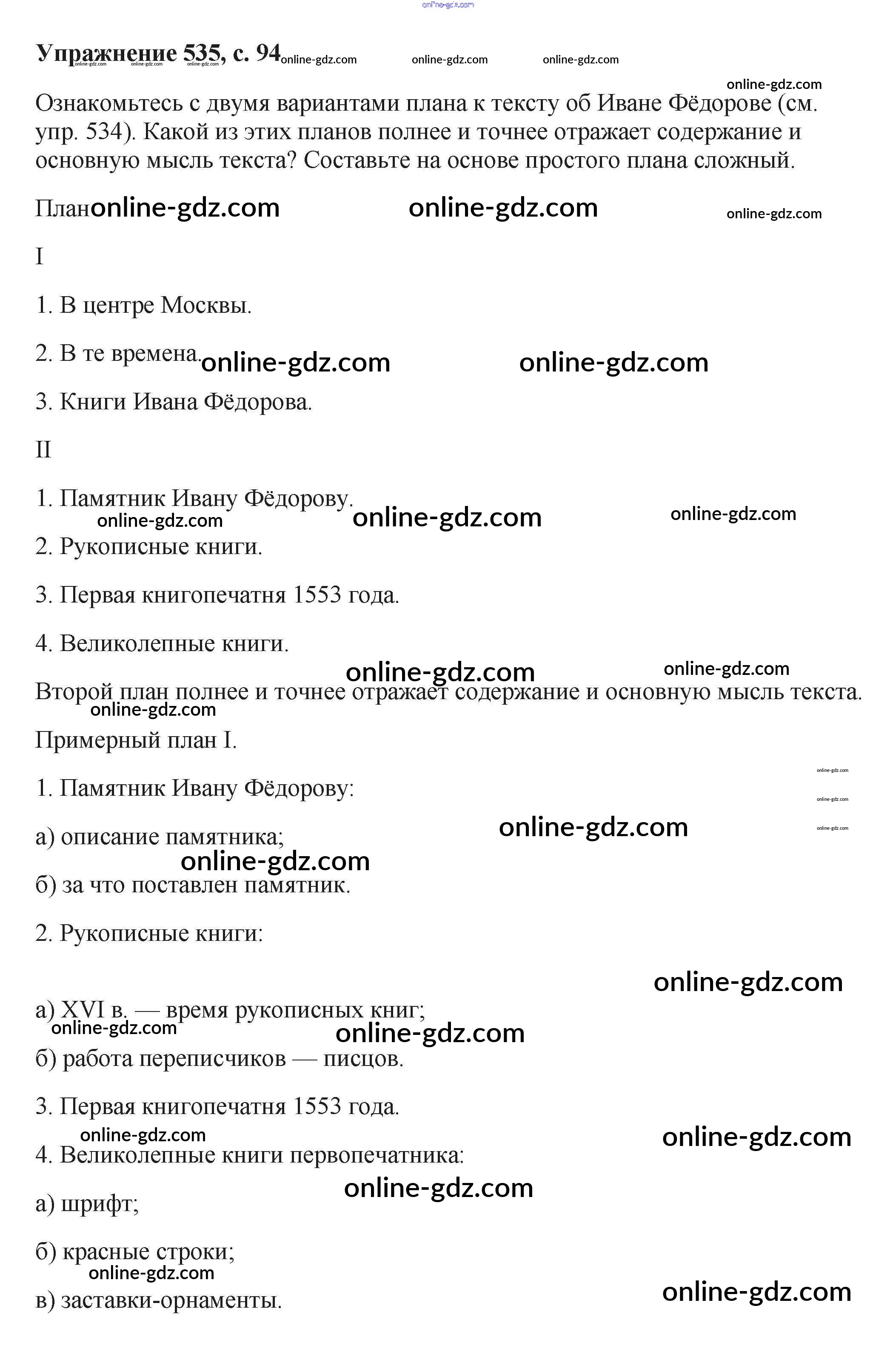 Готовые домашние задания по Русскому языку за 6 класс Учебник Баранов, Ладыженская 2015 - Упражнения Часть 2 535