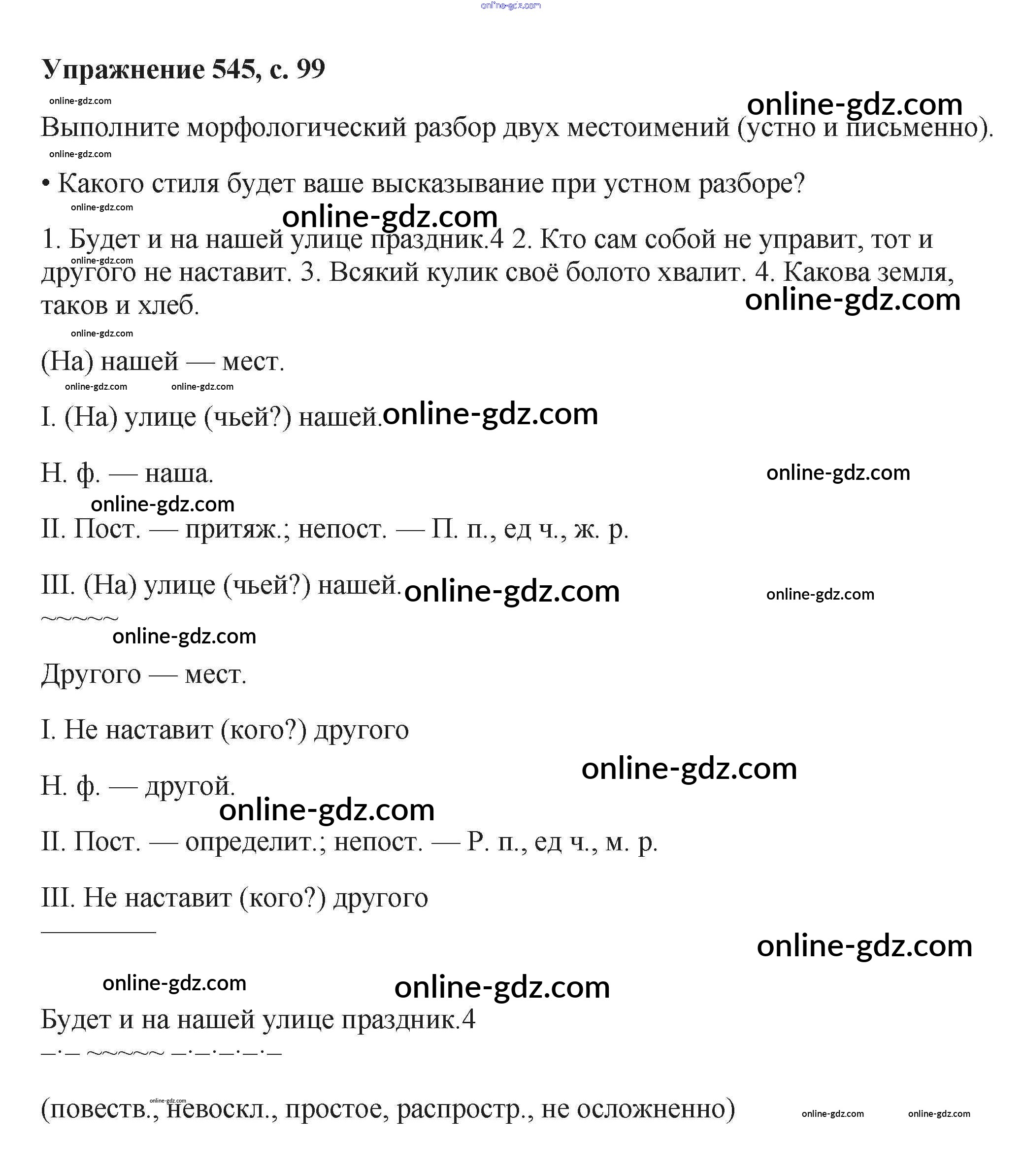Готовые домашние задания по Русскому языку за 6 класс Учебник Баранов, Ладыженская 2015 - Упражнения Часть 2 545