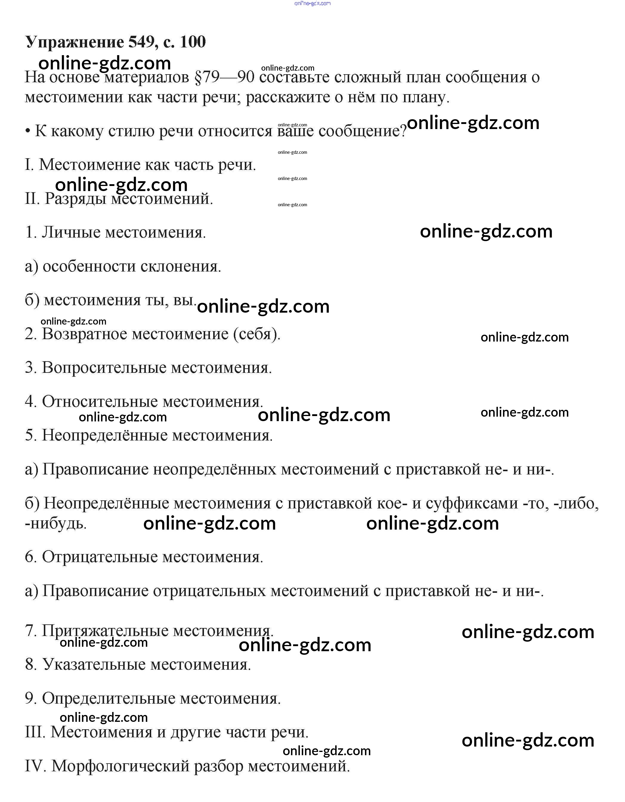 Готовые домашние задания по Русскому языку за 6 класс Учебник Баранов, Ладыженская 2015 - Упражнения Часть 2 549