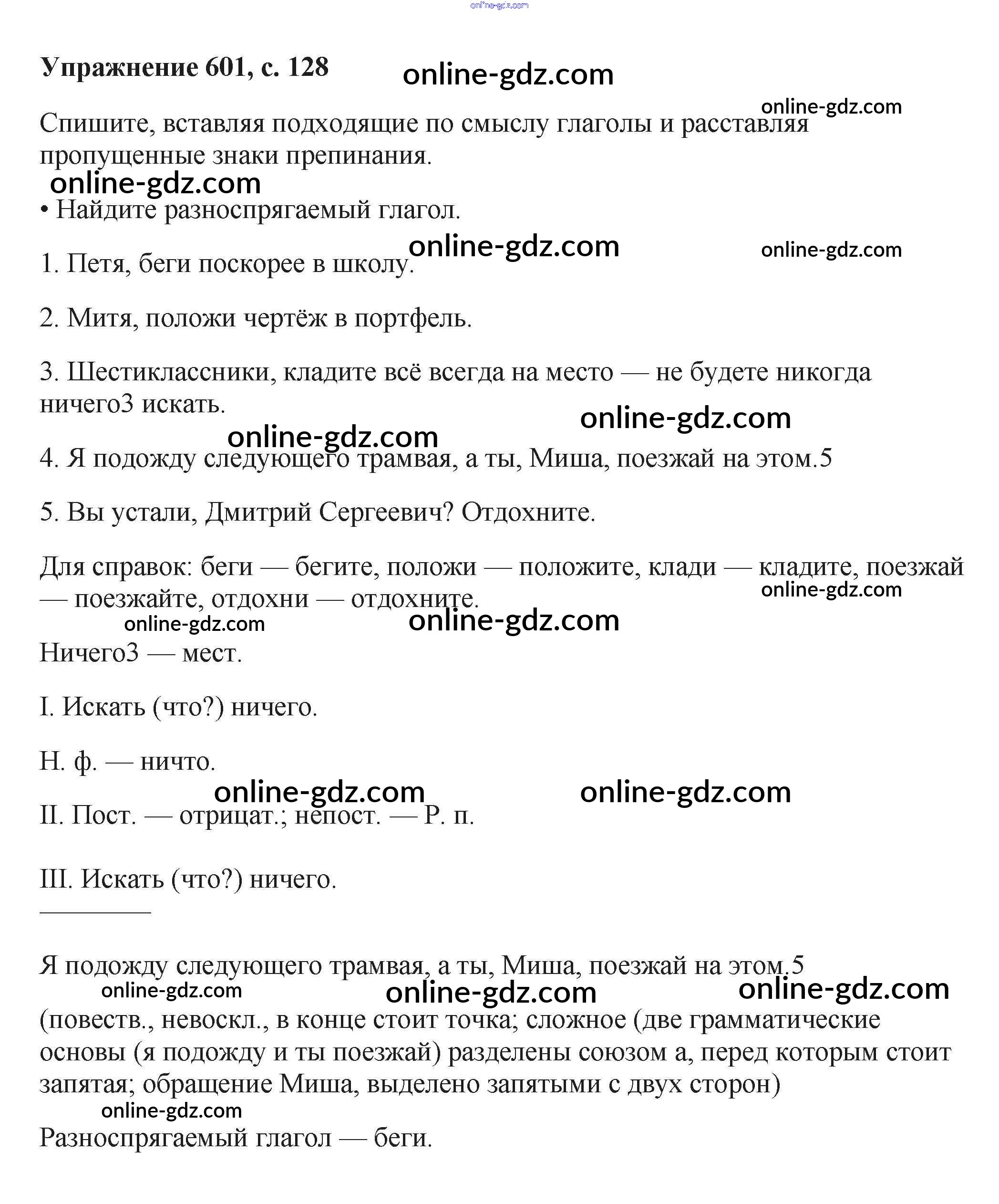 Готовые домашние задания по Русскому языку за 6 класс Учебник Баранов, Ладыженская 2015 - Упражнения Часть 2 601