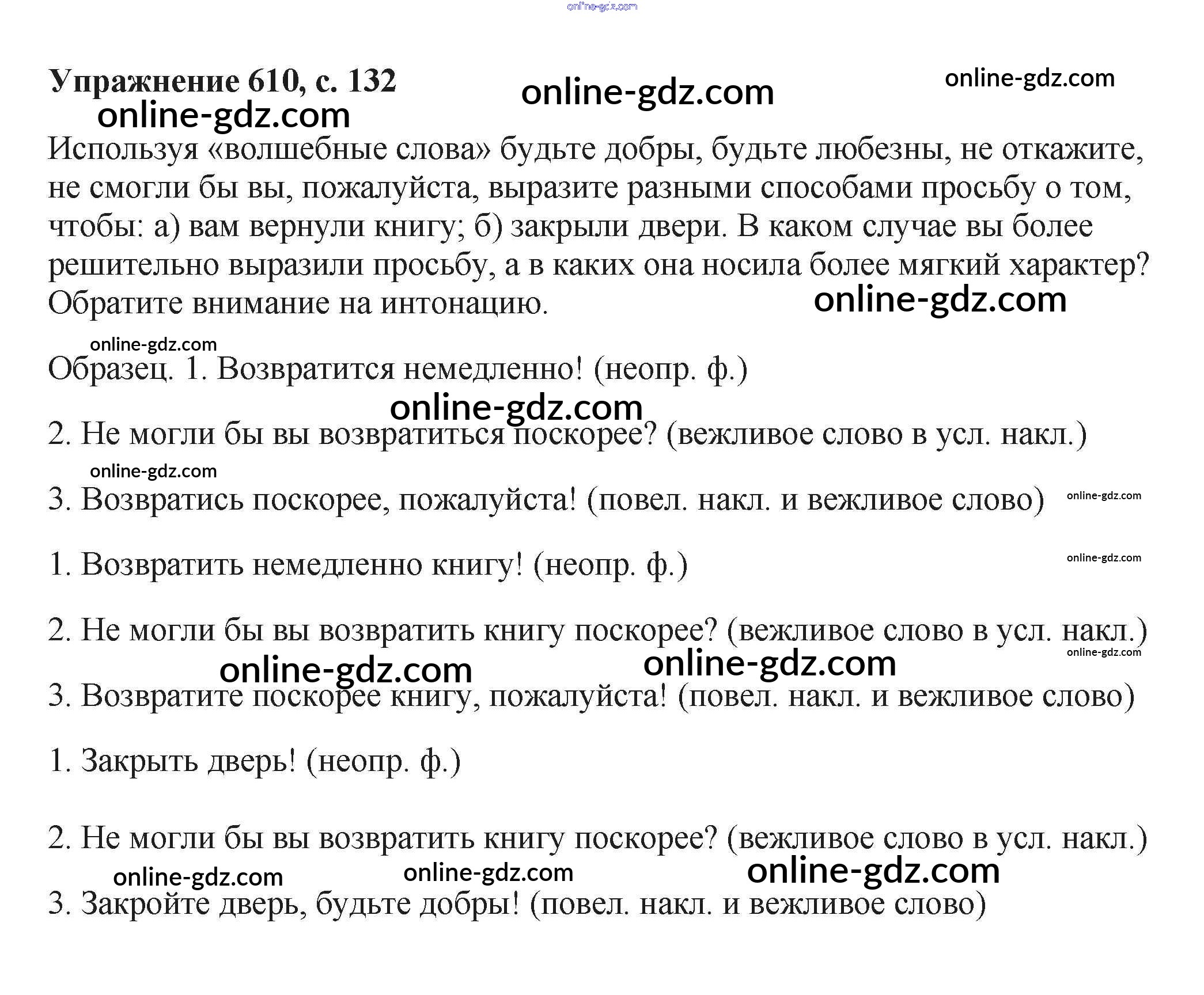 Готовые домашние задания по Русскому языку за 6 класс Учебник Баранов, Ладыженская 2015 - Упражнения Часть 2 610