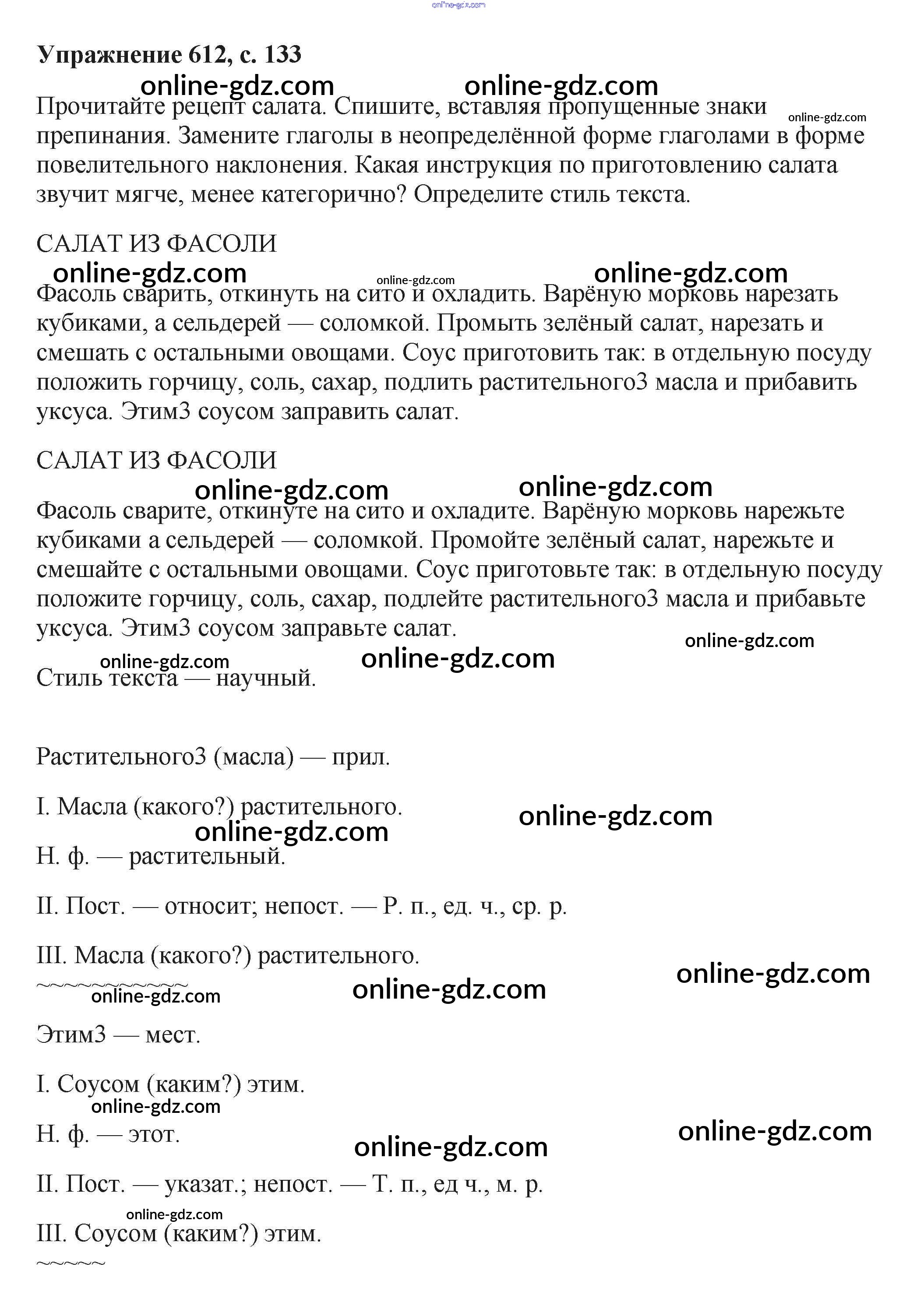 Готовые домашние задания по Русскому языку за 6 класс Учебник Баранов, Ладыженская 2015 - Упражнения Часть 2 612