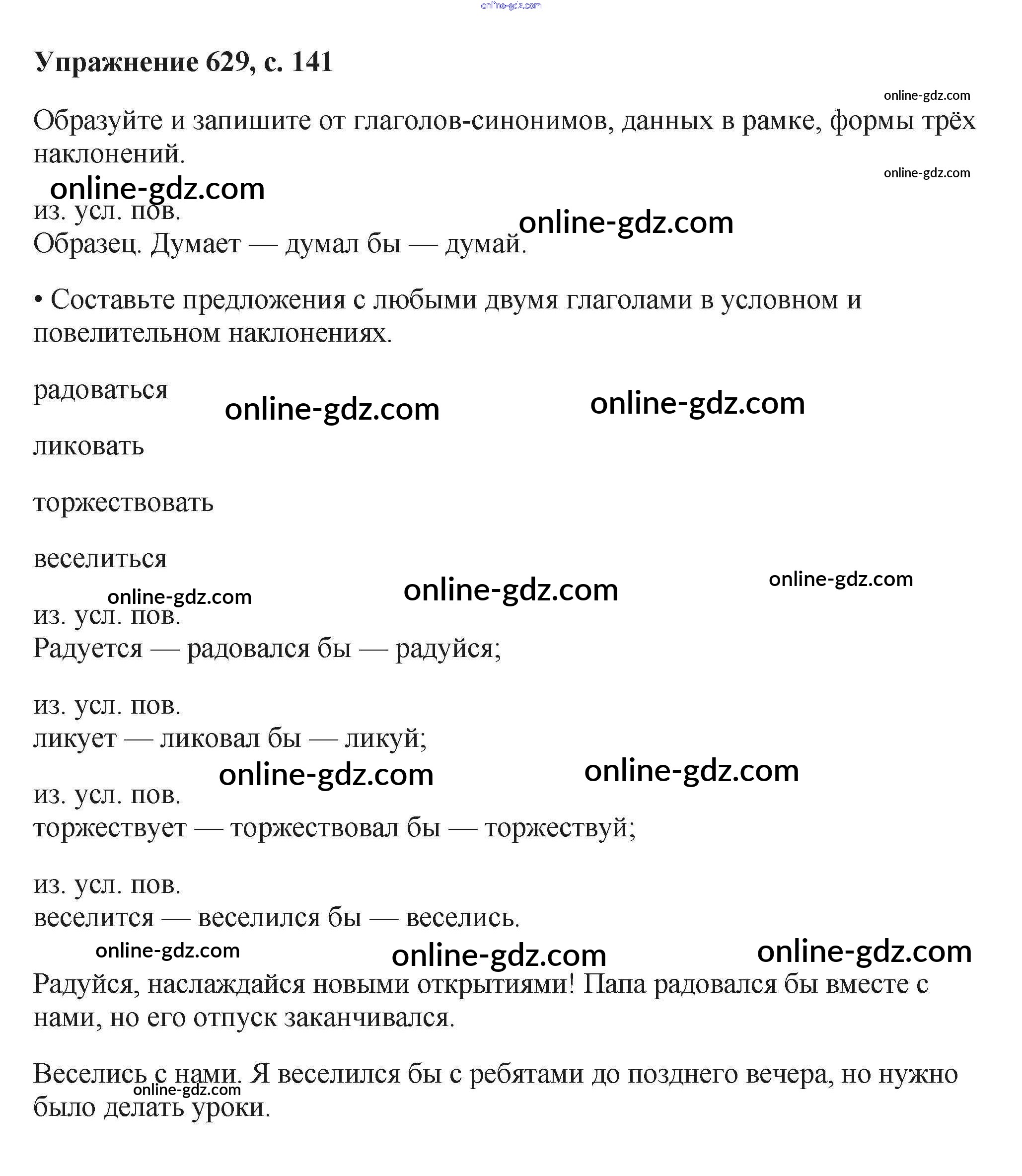 Готовые домашние задания по Русскому языку за 6 класс Учебник Баранов, Ладыженская 2015 - Упражнения Часть 2 629