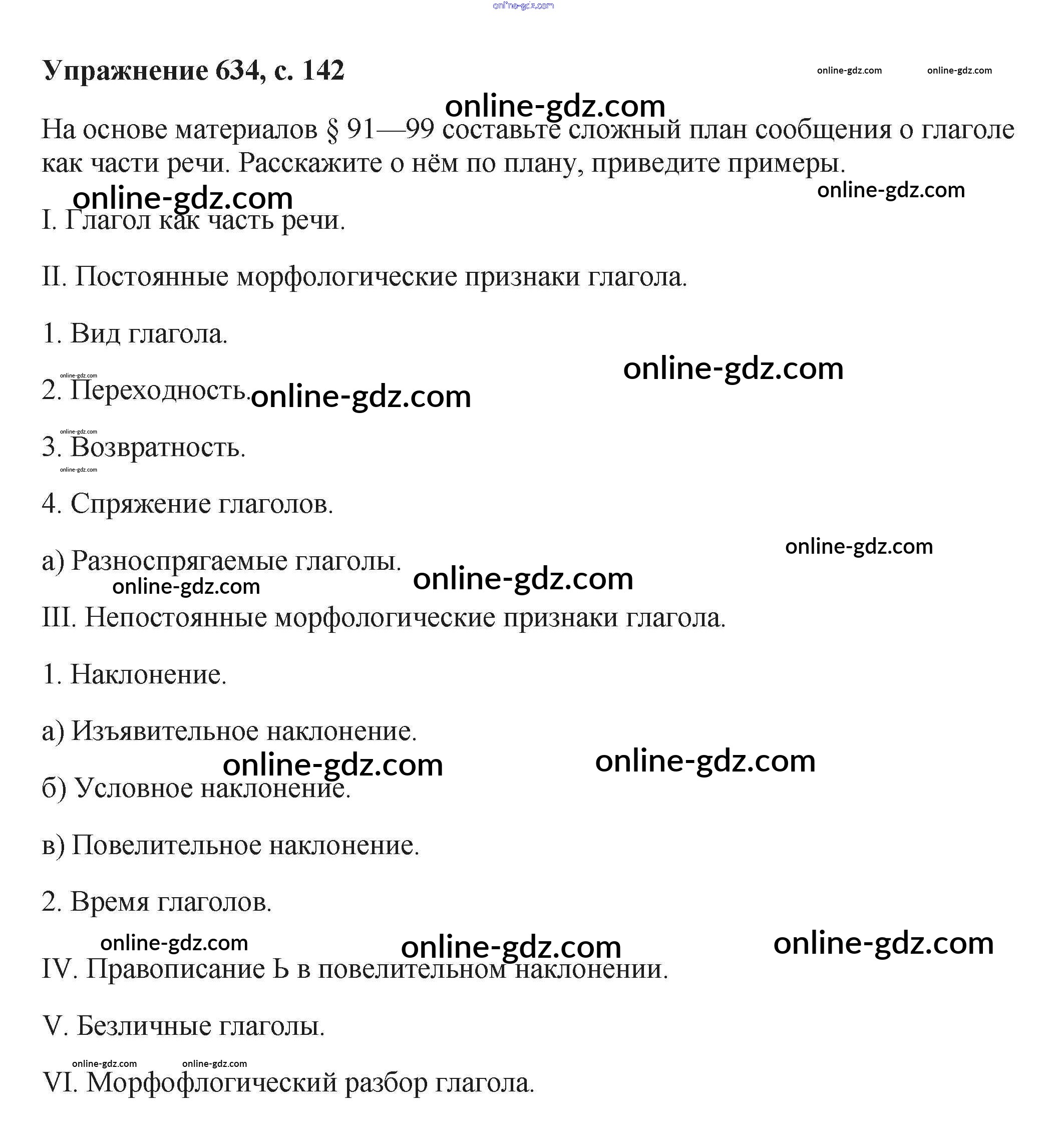 Готовые домашние задания по Русскому языку за 6 класс Учебник Баранов, Ладыженская 2015 - Упражнения Часть 2 634