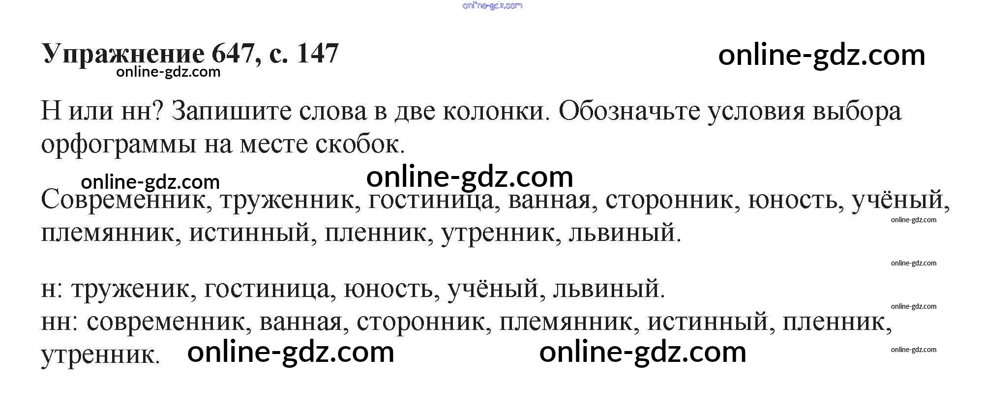 Готовые домашние задания по Русскому языку за 6 класс Учебник Баранов, Ладыженская 2015 - Упражнения Часть 2 647