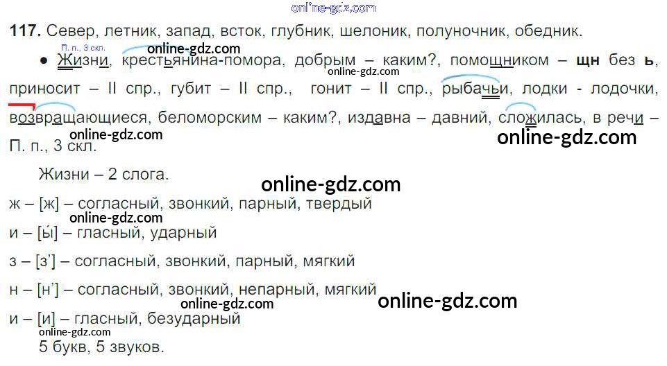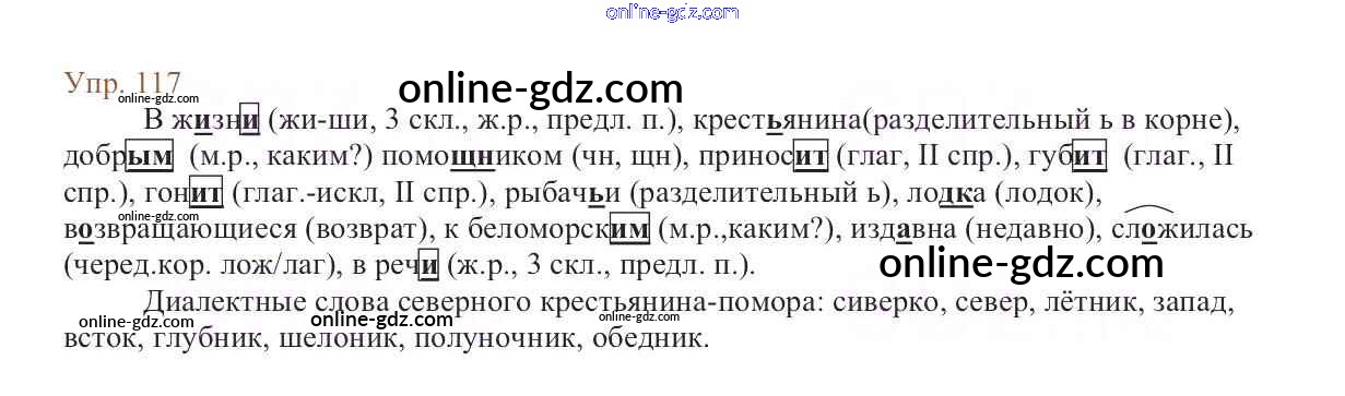 Готовые домашние задания по Русскому языку за 6 класс Учебник Баранов, Ладыженская 2015 - Упражнения Часть 1 117