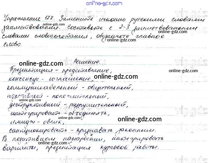 Готовые домашние задания по Русскому языку за 6 класс Учебник Баранов, Ладыженская 2015 - Упражнения Часть 1 127
