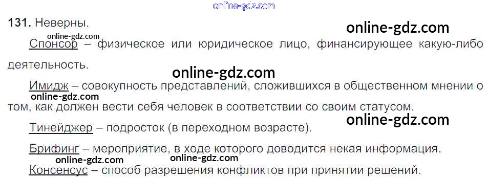 Готовые домашние задания по Русскому языку за 6 класс Учебник Баранов, Ладыженская 2015 - Упражнения Часть 1 131