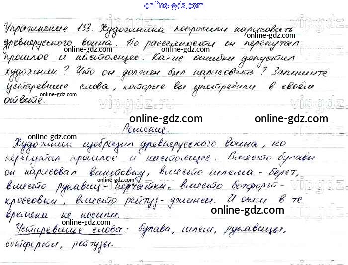 Готовые домашние задания по Русскому языку за 6 класс Учебник Баранов, Ладыженская 2015 - Упражнения Часть 1 133