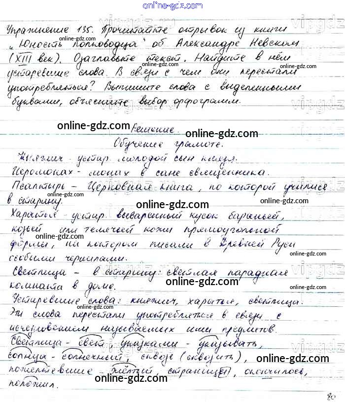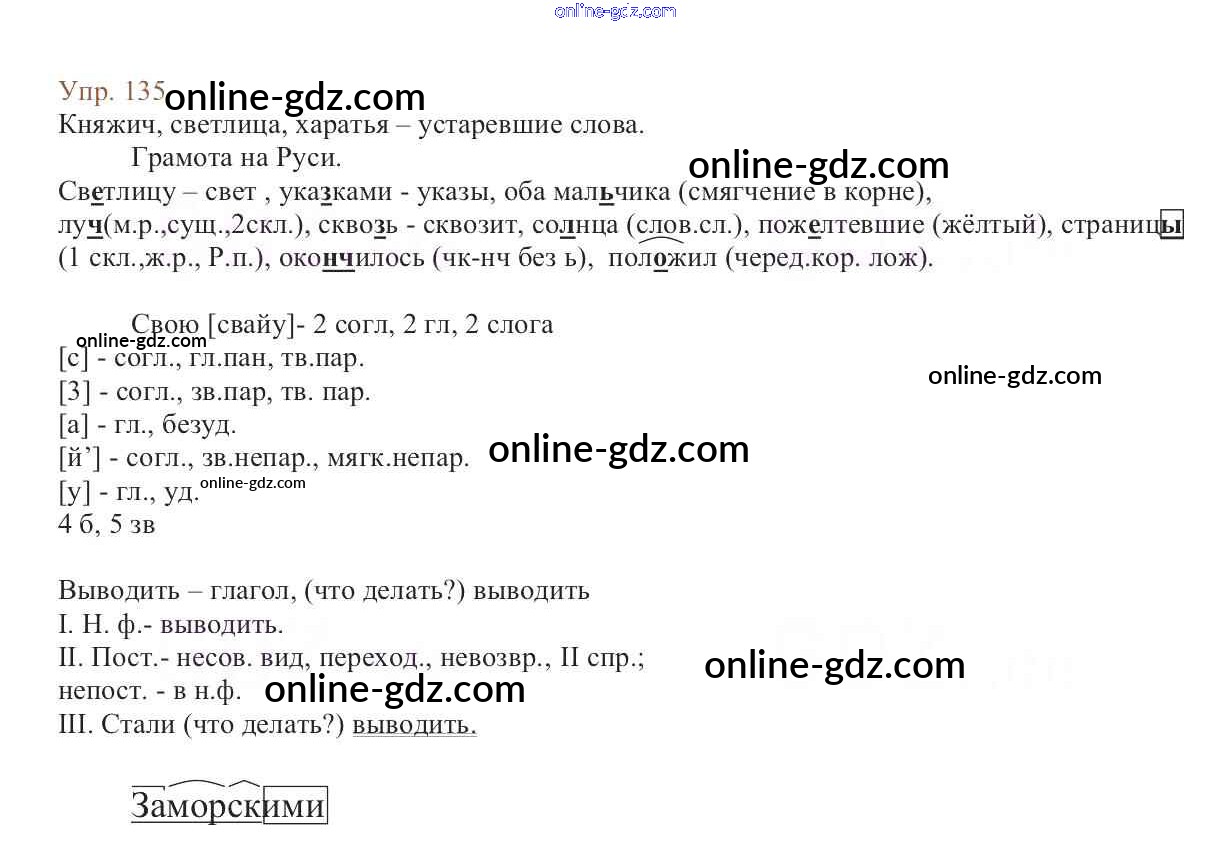 Готовые домашние задания по Русскому языку за 6 класс Учебник Баранов, Ладыженская 2015 - Упражнения Часть 1 135