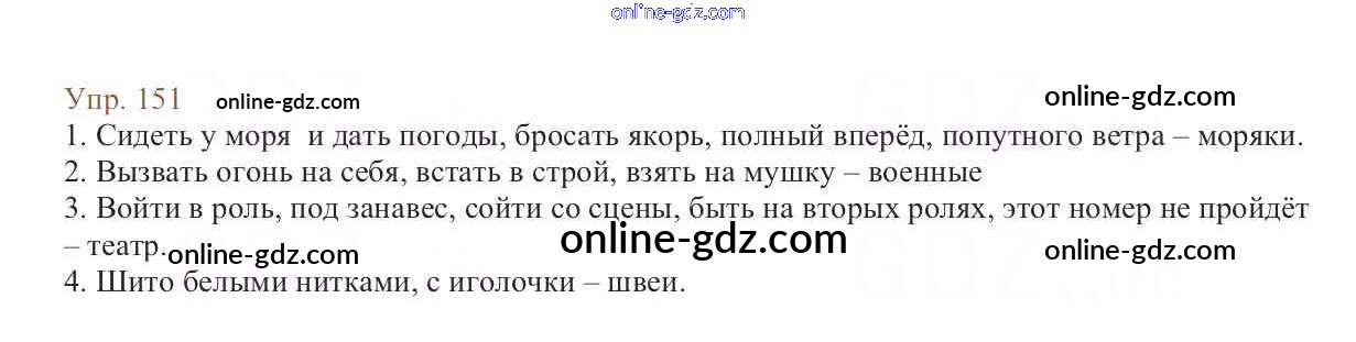 Готовые домашние задания по Русскому языку за 6 класс Учебник Баранов, Ладыженская 2015 - Упражнения Часть 1 151