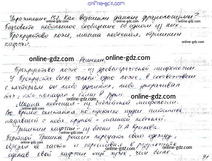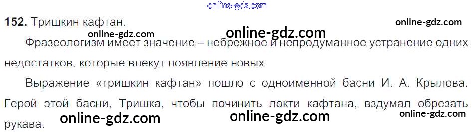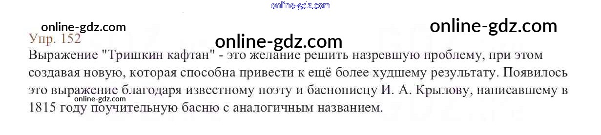 Готовые домашние задания по Русскому языку за 6 класс Учебник Баранов, Ладыженская 2015 - Упражнения Часть 1 152
