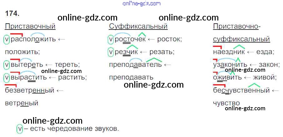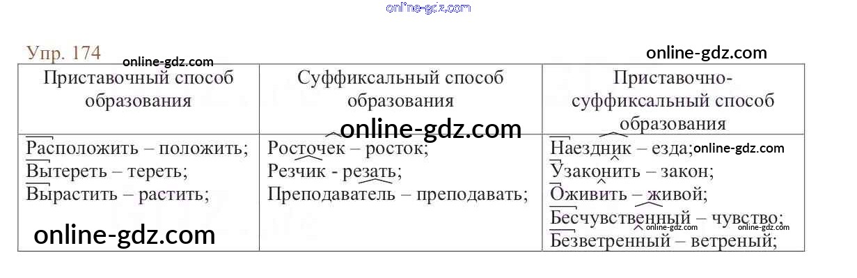 Готовые домашние задания по Русскому языку за 6 класс Учебник Баранов, Ладыженская 2015 - Упражнения Часть 1 174