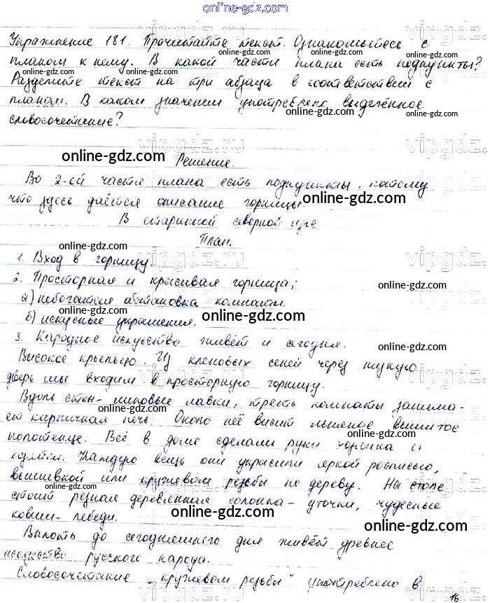 Готовые домашние задания по Русскому языку за 6 класс Учебник Баранов, Ладыженская 2015 - Упражнения Часть 1 181