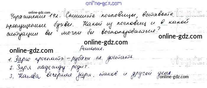 Готовые домашние задания по Русскому языку за 6 класс Учебник Баранов, Ладыженская 2015 - Упражнения Часть 1 192