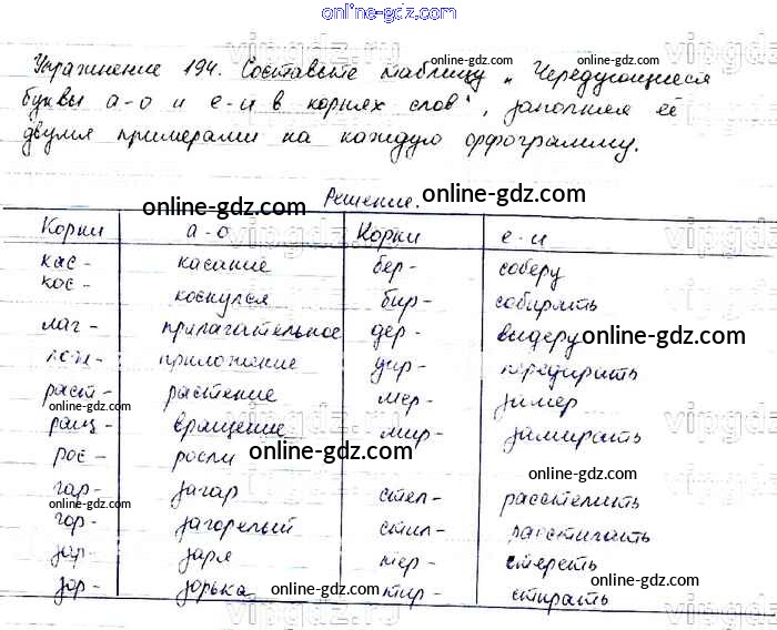 Готовые домашние задания по Русскому языку за 6 класс Учебник Баранов, Ладыженская 2015 - Упражнения Часть 1 194