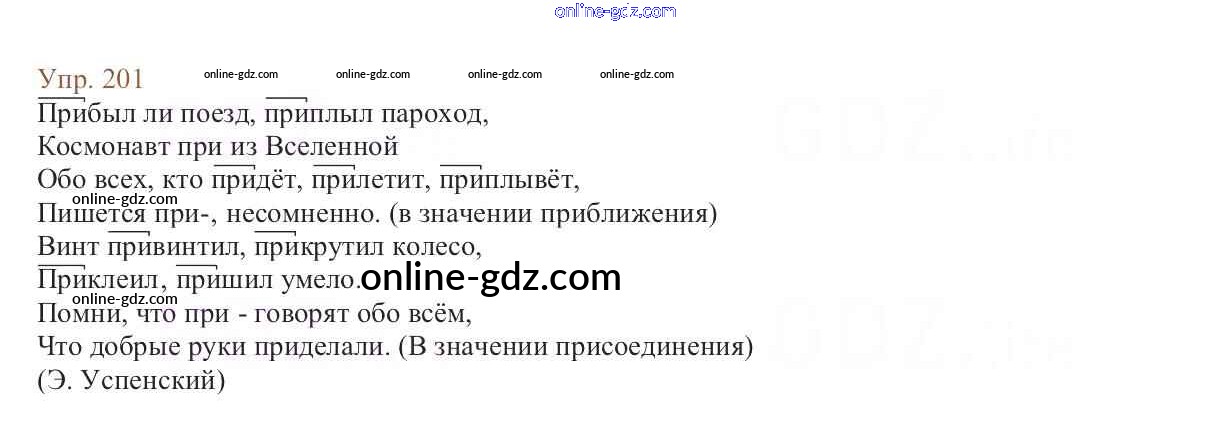 Готовые домашние задания по Русскому языку за 6 класс Учебник Баранов, Ладыженская 2015 - Упражнения Часть 1 201