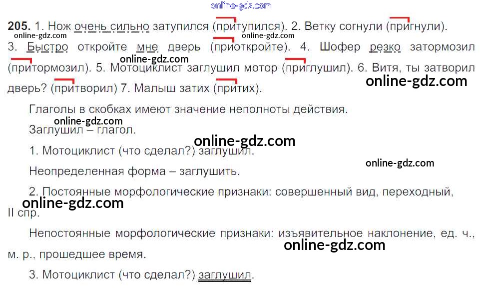Готовые домашние задания по Русскому языку за 6 класс Учебник Баранов, Ладыженская 2015 - Упражнения Часть 1 205