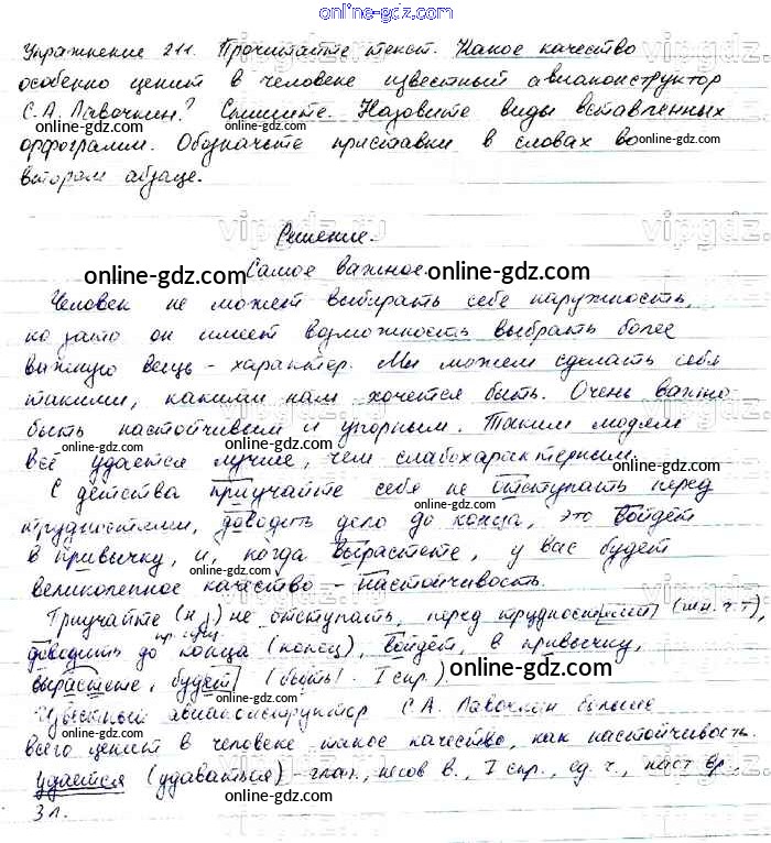 Готовые домашние задания по Русскому языку за 6 класс Учебник Баранов, Ладыженская 2015 - Упражнения Часть 1 211