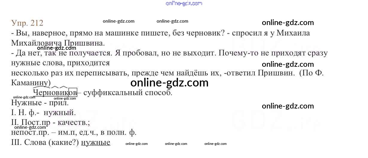 Готовые домашние задания по Русскому языку за 6 класс Учебник Баранов, Ладыженская 2015 - Упражнения Часть 1 212