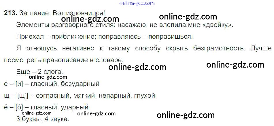 Готовые домашние задания по Русскому языку за 6 класс Учебник Баранов, Ладыженская 2015 - Упражнения Часть 1 213
