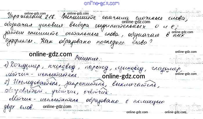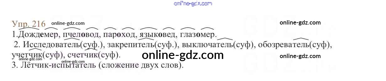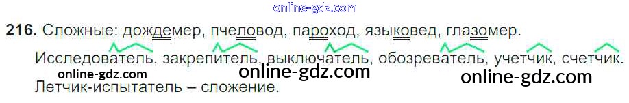 Готовые домашние задания по Русскому языку за 6 класс Учебник Баранов, Ладыженская 2015 - Упражнения Часть 1 216