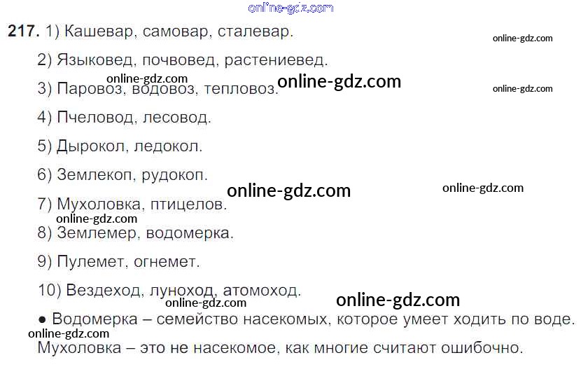Готовые домашние задания по Русскому языку за 6 класс Учебник Баранов, Ладыженская 2015 - Упражнения Часть 1 217