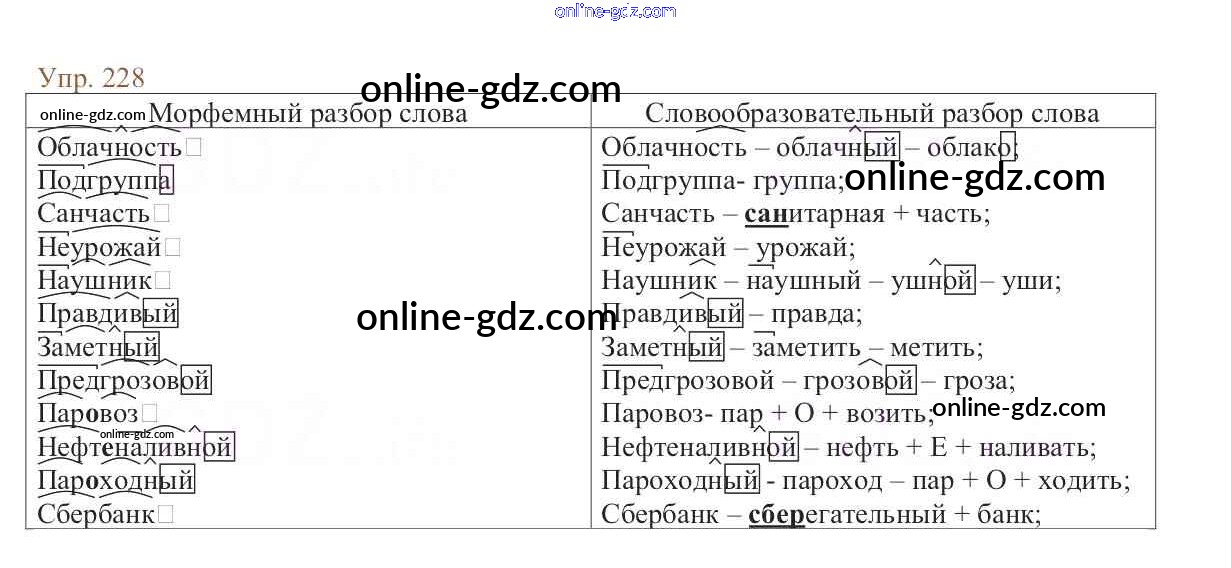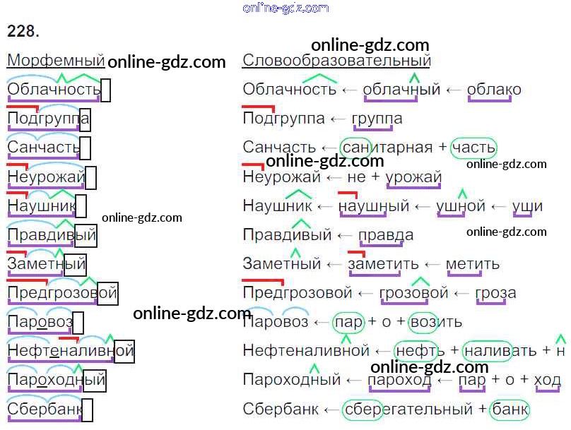 Готовые домашние задания по Русскому языку за 6 класс Учебник Баранов, Ладыженская 2015 - Упражнения Часть 1 228