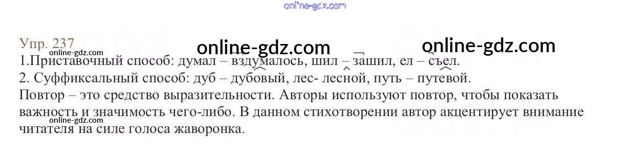 Готовые домашние задания по Русскому языку за 6 класс Учебник Баранов, Ладыженская 2015 - Упражнения Часть 1 237