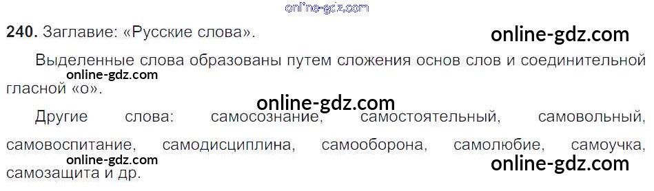 Готовые домашние задания по Русскому языку за 6 класс Учебник Баранов, Ладыженская 2015 - Упражнения Часть 1 240