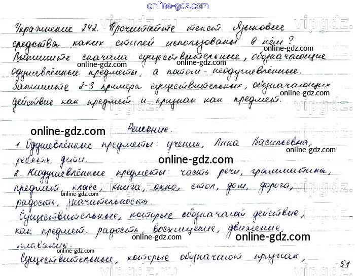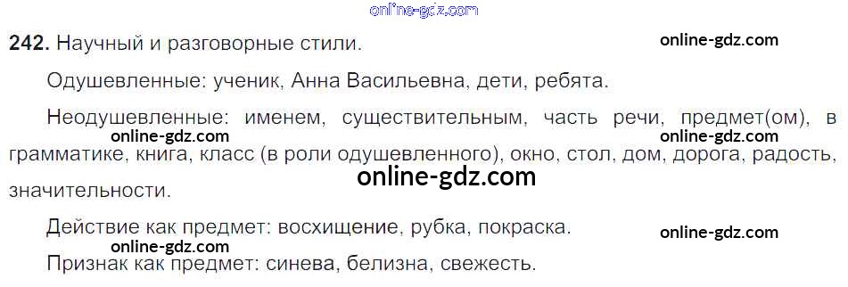 Готовые домашние задания по Русскому языку за 6 класс Учебник Баранов, Ладыженская 2015 - Упражнения Часть 1 242