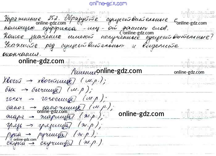 Готовые домашние задания по Русскому языку за 6 класс Учебник Баранов, Ладыженская 2015 - Упражнения Часть 1 252